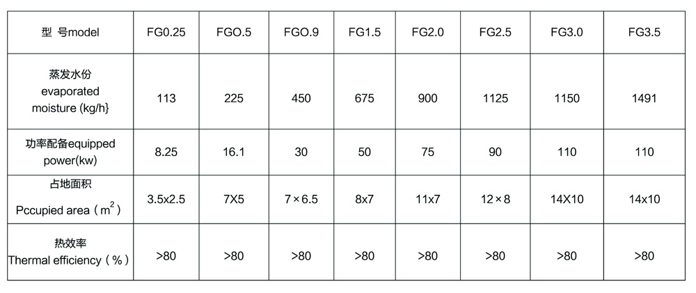 注:表中水份蒸發(fā)量是以玉米淀粉,初水份40%,終水份13.5%,進風(fēng)溫度20℃時測定