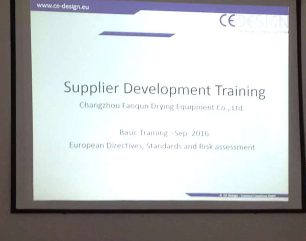 2016年9月2日至9月8日,我公司專門聘請(qǐng)德國(guó)專家為公司員工進(jìn)行歐洲機(jī)械指令、CE(CE certification)等安全方面的培訓(xùn)。我公司組織技術(shù)、生產(chǎn)、質(zhì)檢、工藝、售后等部門認(rèn)真聽(tīng)取課程內(nèi)容,各部門結(jié)合自身情況積極互動(dòng),取得了良好的效果。經(jīng)過(guò)本次培訓(xùn),我公司各環(huán)節(jié)的行為將更加規(guī)范化、標(biāo)準(zhǔn)化,未來(lái)將會(huì)為客戶提供更好的服務(wù)。