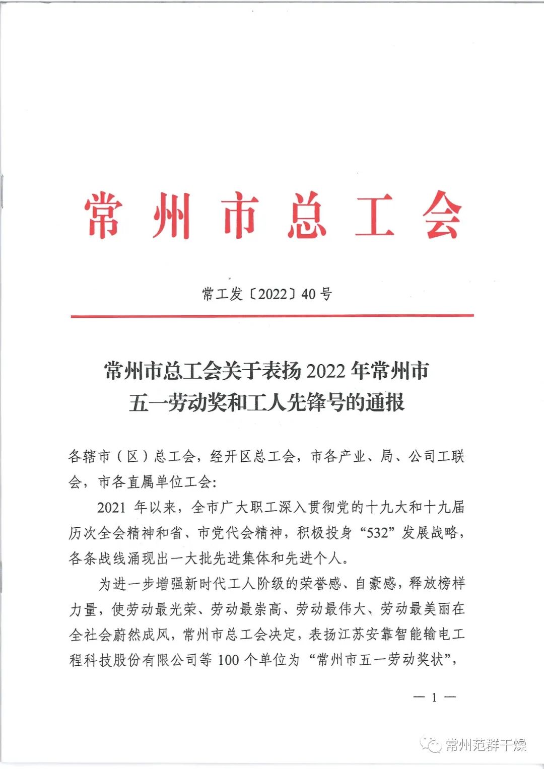 “常州市五一勞動獎和工人先鋒號”是常州市總工會授予企事業(yè)單位的最高榮譽。常州范群將化榮譽為動力,以獎狀為任務(wù),不忘初心、牢記使命,開拓奮進、攻堅克難,實現(xiàn)疫情防控和生產(chǎn)經(jīng)營“雙戰(zhàn)雙勝”等各項工作。