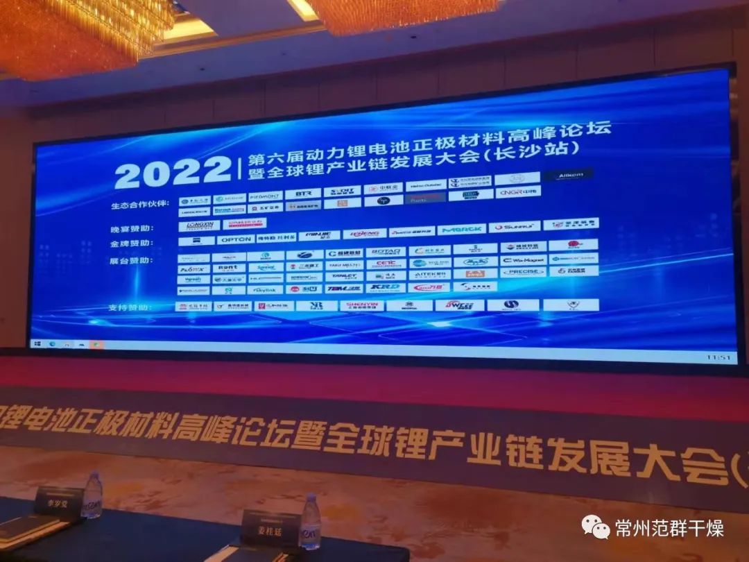 2022年第六屆動力鋰電池正極材料高峰論壇暨全球鋰產(chǎn)業(yè)鏈發(fā)展大會于2022年2月24日在湖南長沙順利召開,常州范群受邀出席大會。