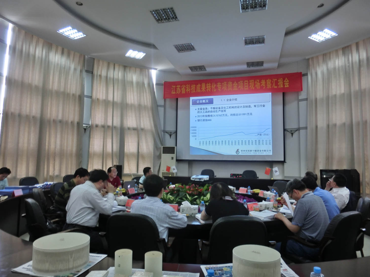 5月22日上午,由江蘇省科技廳、常州市科技局、新北區(qū)科技局領(lǐng)導(dǎo)和專(zhuān)家組成的專(zhuān)家組來(lái)到我公司,在我公司會(huì)議室召開(kāi)了“江蘇省科技成果轉(zhuǎn)化專(zhuān)項(xiàng)資金項(xiàng)目現(xiàn)場(chǎng)考察匯報(bào)會(huì)”,會(huì)上公司董事長(zhǎng)范炳洪先生作了專(zhuān)題匯報(bào),并重點(diǎn)介紹了這次申報(bào)項(xiàng)目的具體情況,陪同領(lǐng)導(dǎo)和專(zhuān)家實(shí)地察看了公司研發(fā)中心、實(shí)驗(yàn)室、生產(chǎn)車(chē)間等;各位專(zhuān)家詳細(xì)聽(tīng)取了匯報(bào),并認(rèn)真了解申報(bào)項(xiàng)目中的產(chǎn)品生產(chǎn)和運(yùn)行情況,詢(xún)問(wèn)有關(guān)項(xiàng)目產(chǎn)品的一些問(wèn)題。專(zhuān)家組成員肯定了我公司的資料準(zhǔn)備充分,所報(bào)項(xiàng)目也得到專(zhuān)家的一致認(rèn)可。
