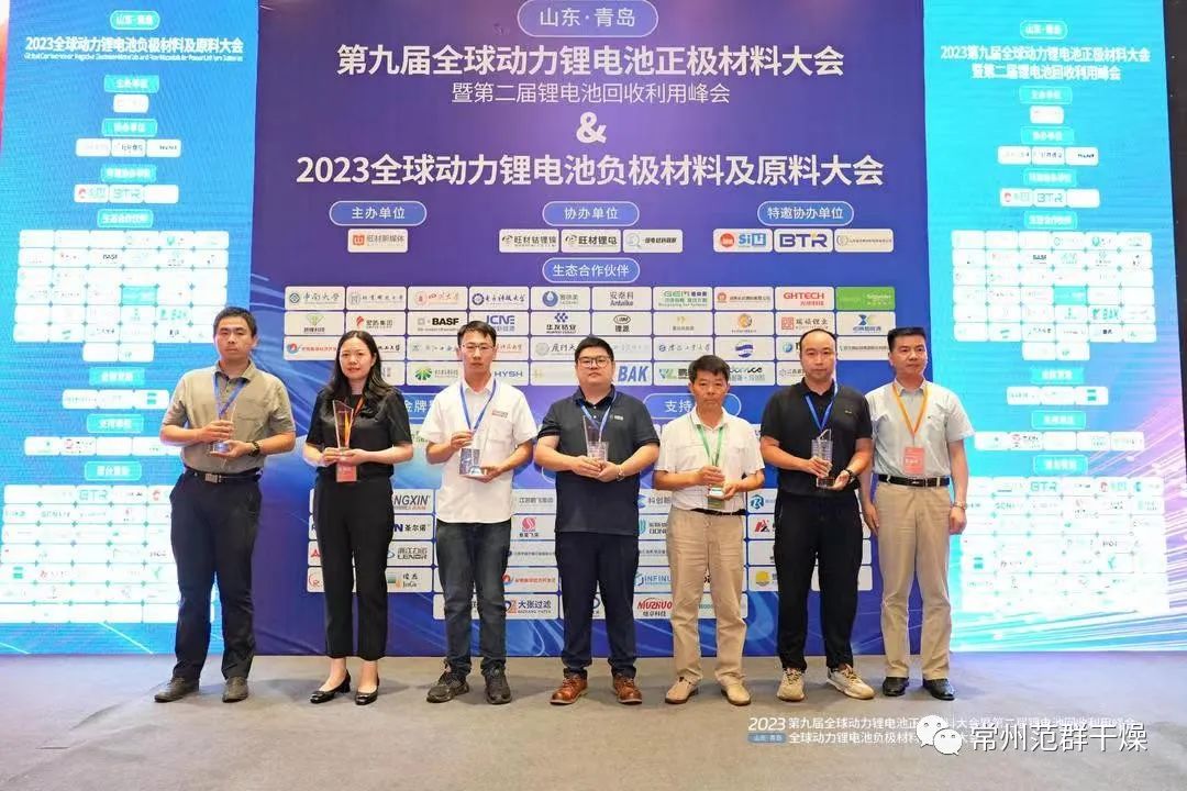 2023 年7月 6-7日,旺材鋰電在青島舉辦了“2023第九屆全球動(dòng)力鋰電池正極材料大會(huì)暨第二屆鋰電池回收利用峰會(huì)”,常州范群獲得旺材鋰電“金翎獎(jiǎng)”優(yōu)質(zhì)供應(yīng)商企業(yè)。