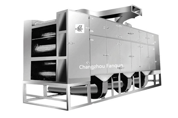 帶式干燥機(jī)是成批生產(chǎn)用的連續(xù)式干燥設(shè)備,用于透氣性較好的片狀、條狀、顆粒狀物料的干燥。帶式干燥機(jī)有單層和多層,具體看你的產(chǎn)量要求