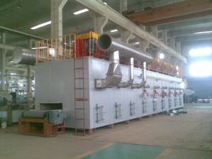 ⊙可以根據(jù)催化劑形狀及產(chǎn)量大小,設(shè)計(jì)出網(wǎng)袋寬度在800-2000mm、長度在10-50m、溫度在120-600℃之間的各型干燥機(jī)、焙燒爐或一體爐。